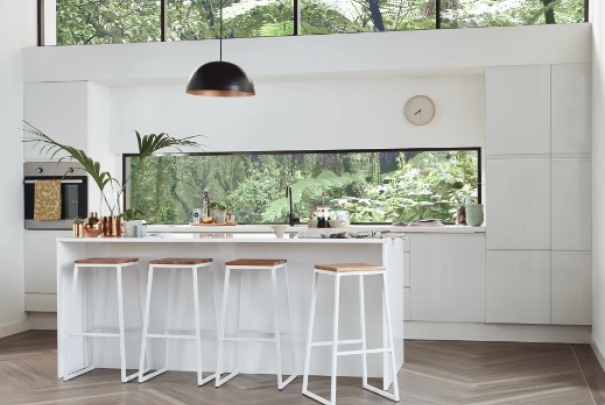 To create a unique and distinctive take on Spotted Gum, a popular Australian wood, the design team combined the clean-lined look of the wood in its natural form with an array of fresh, sophisticated gray tones – ideal for a chic modern home.